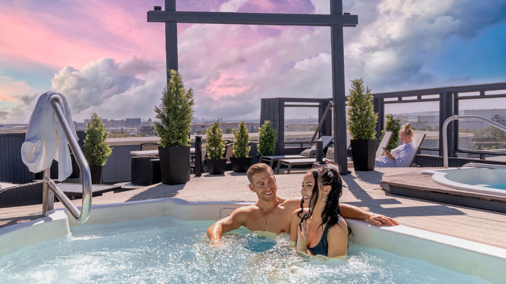 Slip into one of our comfy bathrobes and make your way to the roof top-jetted spas, where you can soak in the warm, soothing waters and take in the night sky.